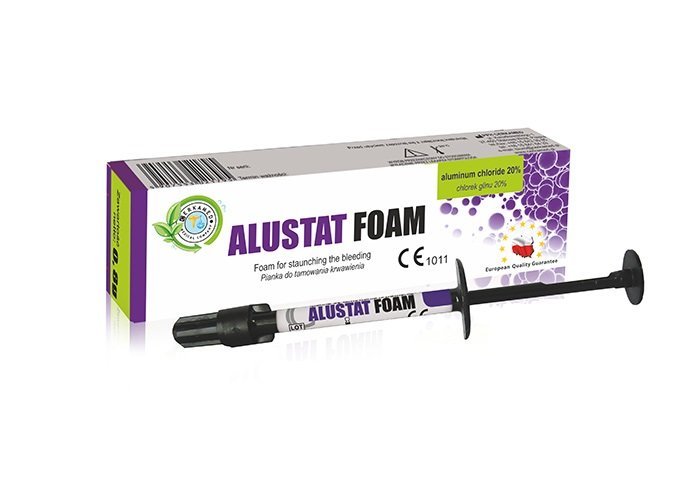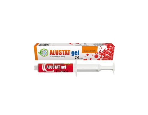 ALUSTAT skirtas naudoti dantų gydymo metu, siekiant sumažinti vietinį patinimą ir sustabdyti dantenų kraujavimą procedūrų metu ir po jų. Jis turi priešuždegiminį ir kraujagysles sutraukiantį poveikį. 10 g.