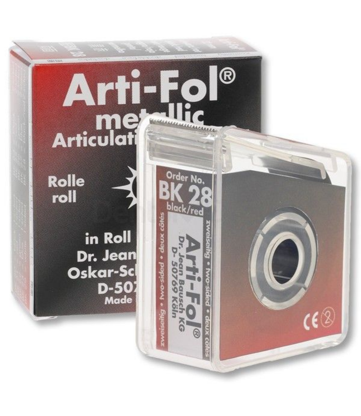 Arti-Fol metallic artikulācijas follijs 12 mikroni, melns/sarkans.