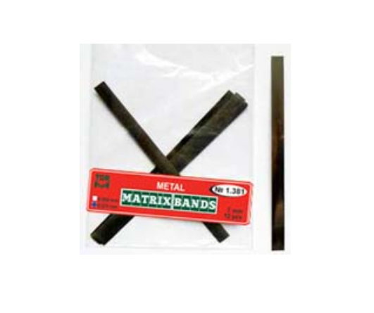 Metalinės matricų juostelės moliarams N 1.1931. 0,05 mm (mikronai) storio. 12 vnt.