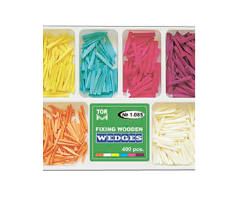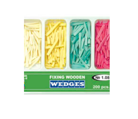 Mediniai kaištukai N 1.083 (4 tipų rinkinys). 200 vnt.: balti – ploni ir trumpi (100 vnt.); geltoni – ploni ir ilgi (50 vnt.); mėlyni – vidutinio storumo ir trumpi (50 vnt.); rožiniai – vidutinio storumo ir ilgi (50 vnt.)