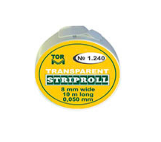 Permatomos juostelės ritinėlis N 1.240. 0,05 mm storio, 8 mm pločio, 10 m ilgio (mm – mikronai).